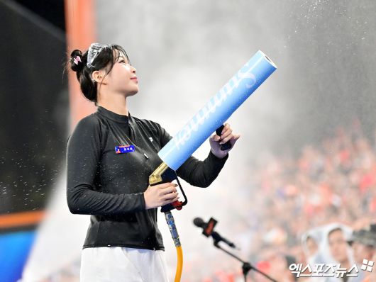 (엑스포츠뉴스 대전, 김한준 기자) 12일 오후 대전 한화생명 볼파크에서 열린 '2025 신한 SOL Bank KBO리그' 롯데 자이언츠와 한화 이글스의 경기, 한화 최석화 치어리더가 열띤 응원을 선보이고 있다.김한준 기자 kowel@xportsnews.com