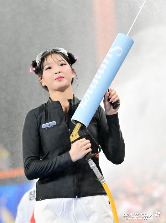 (엑스포츠뉴스 대전, 김한준 기자) 12일 오후 대전 한화생명 볼파크에서 열린 '2025 신한 SOL Bank KBO리그' 롯데 자이언츠와 한화 이글스의 경기, 한화 최석화 치어리더가 열띤 응원을 선보이고 있다.김한준 기자 kowel@xportsnews.com