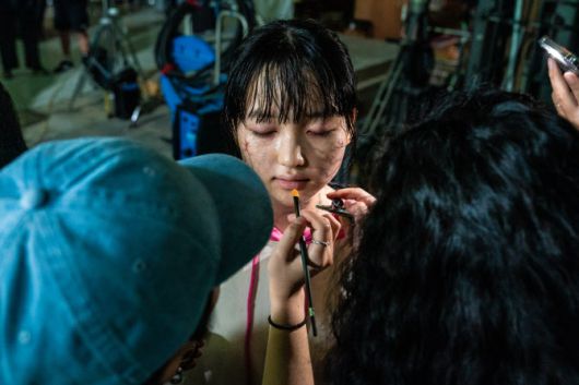 공개된 스틸에는 진지하면서도 화기애애한 촬영 현장이 담겼다. 조정석과 최유리는 전영 안무감독의 디렉션에 몰입해 각 장면에 대한 이해도를 높였으며, 이정은은 효자손 액션을 위해 와이어에 매달려 리허설을 소화하는 모습으로 현장 분위기를 끌어올렸다. 좀비 분장을 완벽하게 소화한 최유리와 함께한 고양이 '애용이', 필감성 감독과의 다정한 컷은 따뜻한 팀워크를 보여준다.