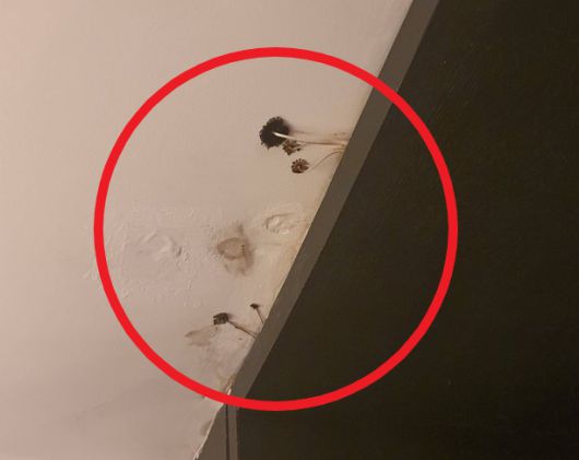 사진에는 객실 출입문 복도 위 천장에서 버섯 5개가 줄기를 뻗은 채 자라는 모습이 담겼습니다.