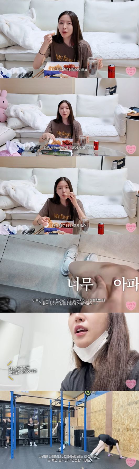 "(운동을) 빡세게 하고 크게 다친 건 아닌데 여기가 너무 아프다"며 다리를 문지른 성해은은 "걷기도 힘들 지경이 와서 와버렸다. 운동 안 한 지도 이틀 됐다. 살맛이 안 난다"고 토로했다.