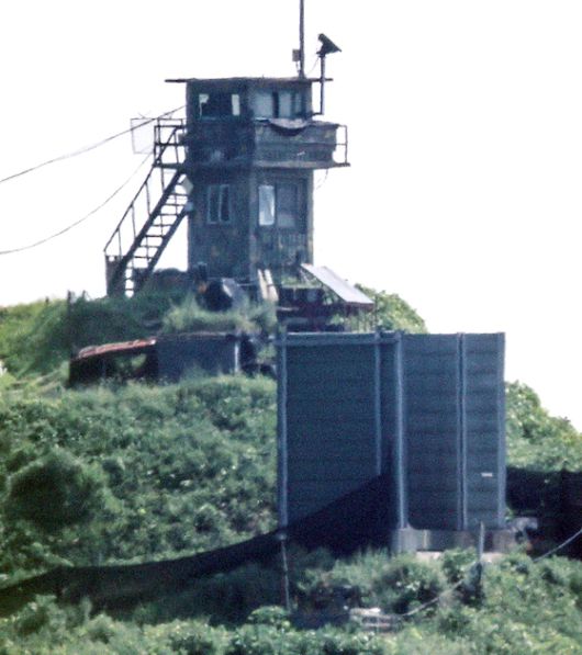 4일 경기 파주시 접경지역의 남측 초소에 대북 확성기 가림막이 보이고 있다. 국방부는 이날부터 대북 확성기 철거를 시작했다고 밝혔다. 확성기가 철거되고 보이지 않는다. 우상조 기자 |