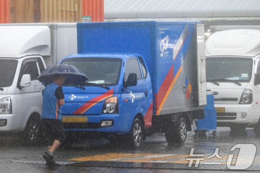 (부천=뉴스1) 이승배 기자 = 택배 없는 날을 하루 앞둔 13일 경기 부천시의 한 택배 물류센터에 CJ대한통운 택배 차량의 모습이 보이고 있다. 주요 택배 업체들은 광복절 전날인 8월14일을 택배 없는 날로 정해 택배 기사들의 휴무일로 운영하고 있다. 택배 없는 날은 업계 자율규약으로 쿠팡은 주5일 이미 시행이라는 이유로 동참하지 않고 있다. 한편 업계에서는 일을 중단한 만큼 다음 날 업무가 몰리는 등 택배 없는 날이 근본적인 대책이 아니라는 목소리도 나오고 있는 실정이다. 2025.8.13/뉴스1