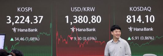 코스피지수는 전일 대비 1.08% 상승한 3224.37에 마감했다. 이로써 코스피지수는 4거래일 만에 반등했다. 개인이 6606억원 순매도한 반면 외국인과 기관이 각각 6345억원, 808억원 순매수했다. 코스피지수는 장초반엔 개인이 매수 우위인 반면 외국인과 기관은 매도 우위였다.