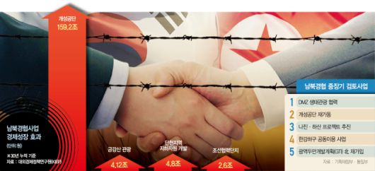정부가 마련 중인 경제성장 전략에는 북미 대화 진전 등 여건이 조성됐을 때 경협을 본격화하기 위한 선제적 준비가 포함된다. 여건 조성 시 추진할 수 있는 사업으로 개성공단 재가동, 나진·하산 프로젝트, 광역두만개발계획(GTI) 북한 재가입, 한강하구 공동 이용 사업 등이 검토되고 있다.