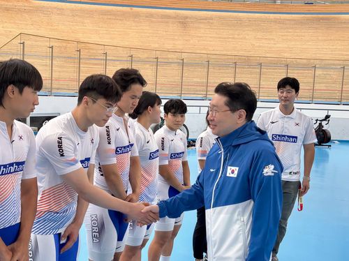 (서울=연합뉴스) 이대호 기자 = 이상현 대한사이클연맹 회장이 13일 충북 진천 국가대표선수촌을 방문해 2026 아이치·나고야 아시안게임을 준비 중인 사이클 국가대표 선수단을 격려했다.