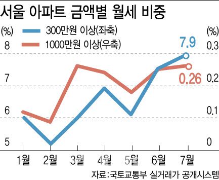 서울 아파트 300만원 이상 월세비중 6.0%→7.9%