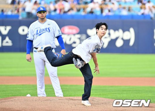 [OSEN=대구, 이석우 기자] 13일 대구삼성라이온즈파크에서 2025 신한 SOL 뱅크 KBO 리그 삼성 라이온즈와 KIA 타이거즈의 경기가 열렸다. 홈팀 삼성은 후라도가, 방문팀 KIA는 올러가 선발 출전했다. 배우 장동윤이 삼성 라이온즈 승리 기원 시구를 하고 있다. 2025.08.13 / foto0307@osen.co.kr