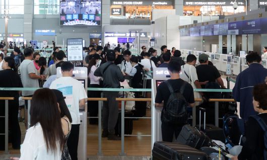 7일 인천국제공항 출국장에서 여행객들이 출국 수속을 밟고 있다. 뉴시스 |