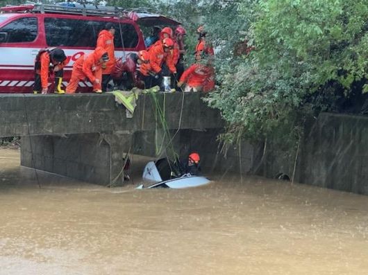 13일 경기 김포시 고촌읍에서 하천에 떠내려간 차량 안에서 운전자가 숨진 채 발견됐다./김포소방서 |