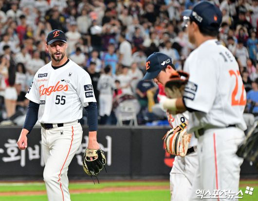 마운드에서는 선발 라이언 와이스의 존재감이 돋보였다. 와이스는 6이닝 1피안타 5사사구 11탈삼진 무실점으로 시즌 13승째를 올렸다. 타선에서는 손아섭이 5타수 1안타 3타점 1득점으로 자신의 역할을 다했다. 4타수 2안타 1득점을 올린 노시환도 팀 승리에 힘을 보탰다.