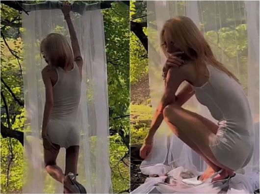 공개한 영상에서 최준희는 타이트한 화이트 핫팬츠와 슬리브리스 티셔츠로 몸매를 그대로 드러냈다.