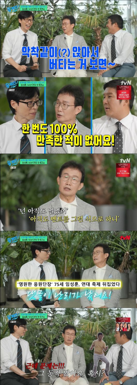 유재석의 데뷔를 지켜본 대선배 MC 임성훈은 '가요톱10' '사랑의스튜디오' 등 1975 데뷔부터 지금까지 한 주도 거르지 않고 매주 TV에서 만날 수 있었다. 그런 임성훈은 26년간 진행하던 '세상에 이런 일이'에서 내려왔다. 국내 프로그램 최장수 MC로 26년이라는 대장정을 마무리한 임성훈.