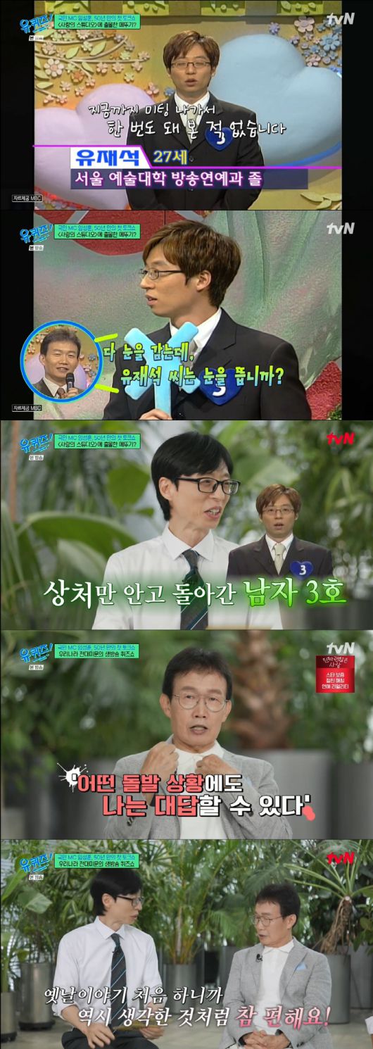 임성훈은 신혼여행도 방송차 부산으로 갔다고. 그는 "내가 방송하는 사이 아내 혼자 부산을 구경하다가 끝나고나서야 같이 놀고 서울에 곧장 올라왔다"라 했고 유재석은 "요즘엔 그러면 인터넷에 글 올라온다"라고 빵 터졌다.