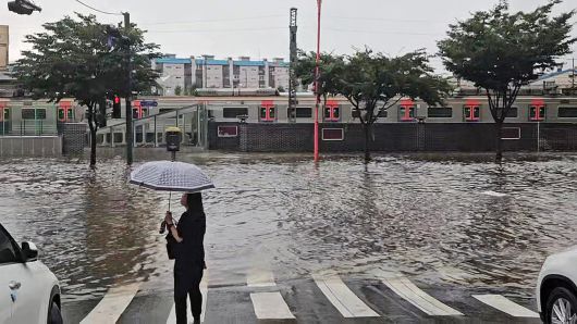 ▲ 13일 인천역 일대 도로가 침수된 모습