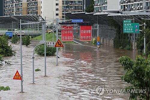 중랑천 물바다에 잠긴 동부간선도로 |