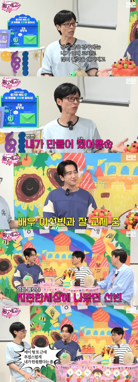 이어 "선빈 씨도 지금 영화도 잘 되고"라며 영화 '노이즈'를 언급했다. 지석진은 자신의 유튜브 채널에 이선빈이 홍보차 나왔던 것을 언급하며 "내가 한몫했다"고 생색냈다.
