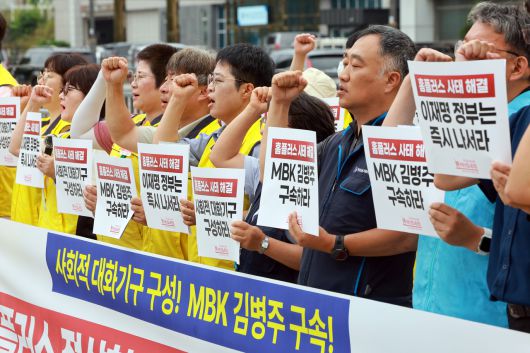 노조는 MBK에 대해 “이번 15개 매장 폐점 역시 정부의 민생지원금 미포함을 이유로 삼는 등 책임을 외부로 떠넘기고 있다”라며 “향후 자가 매장까지 폐점시킬 가능성을 열었다”라고 주장했다. 그러면서 “기업회생은 영업 지속 기반을 마련하는 절차지만, MBK는 이를 청산 준비 과정으로 변질시켰다”라고 지적했다.