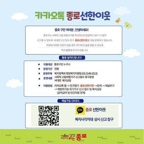 '종로선한이웃' 카카오톡 채널 안내문 |