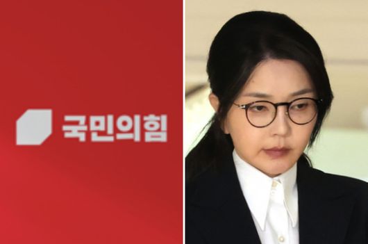 국민의힘 로고. 오른쪽은 윤석열 전 대통령 부인 김건희 씨가 지난 6일 서울 종로구 KT광화문빌딩 웨스트에 마련된 민중기 특별검사팀에서 피의자 신분으로 조사를 받고 귀가하는 모습. 〈사진=JTBC, 연합뉴스〉 |