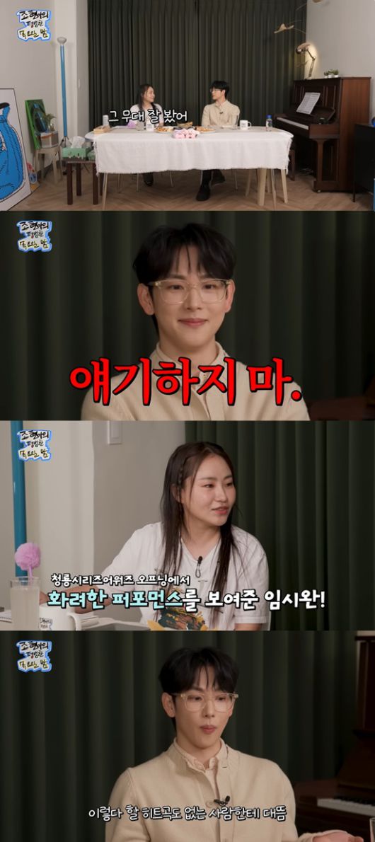 토크를 진행하던 중 조현아는 "그 무대 잘 봤어"라고 운을 뗐고, 임시완은 바로 "얘기하지 마"라며 고개를 돌렸다.