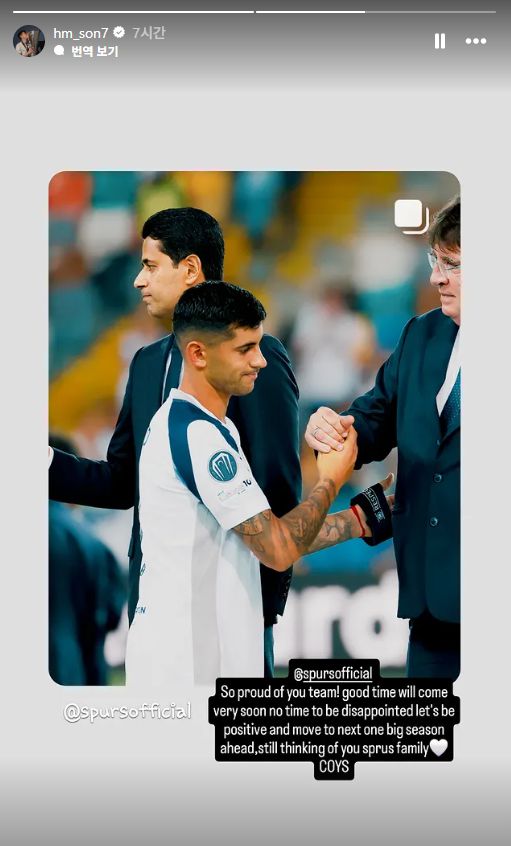 영국 매체 '풋볼 런던'은 "손흥민이 토트넘이 UEFA 슈퍼컵에서 PSG에 패배한 이후 품격 있는 메시지를 전했다"면서 "손흥민은 지난주 로스앤젤레스 FC(LAFC)로 이적했지만, 그럼에도 불구하고 전 토트넘 주장은 인스타그램을 통해 친정팀에 메시지를 보냈다"며 손흥민이 전한 메시지를 주목했다.