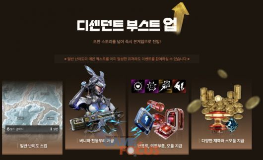 빠르게 성장하고 게임에 녹아들 수 있는 시스템을 도입하여 신규, 복귀 이용자들의 진입장벽을 대폭 낮춘 것도 한몫했다. 먼저, 일반 난도 퀘스트를 일괄 완료하고 어려움 난도가 개방되는 ‘디센던트 부스트 업’을 통해 빠르게 신규 콘텐츠를 경험할 수 있다. 이와 함께, 인기 ‘계승자’ ‘버니’를 비롯해 궁극 무기, ‘반응로’, ‘외장 부품’, ‘에너지 활성체’, 각종 재화 등을 지급해 신규 이용자의 수월한 플레이를 돕는다.