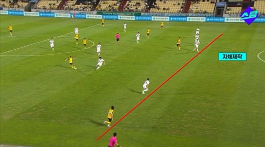 하지만 오프사이드로 확인한 느린 장면에서 누구도 최종 두 번째 수비보다 앞선 전남 선수는 없었다. 오프사이드는 공격수가 상대 최종 두 번째 수비수보다 앞서 있을 때 선언된다.
