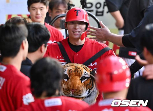 [OSEN=대구, 이석우 기자] 14일 대구삼성라이온즈파크에서 2025 신한 SOL 뱅크 KBO 리그 삼성 라이온즈와 KIA 타이거즈의 경기가 열렸다. 홈팀 삼성은 원태인이, 방문팀 KIA는 양현종이 선발 출전했다. KIA 타이거즈 김호령이 3회초 좌월 솔로 홈런을 치고 하이파이브를 하고 있다. 2025.08.14 / foto0307@osen.co.kr