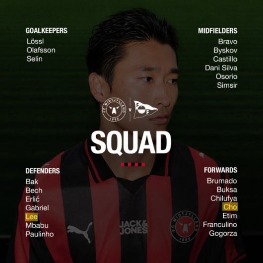 크리스티안 바흐 바크 미트윌란 신임 스포츠 디렉터는 “조규성이 점점 좋아지고 있다. 그의 복귀를 기다리고 있다”고 말했는데, 이한범 역시 이날 스쿼드에 포함돼 ‘한국인 듀오’의 동시 출전 여부에도 관심이 모인다.