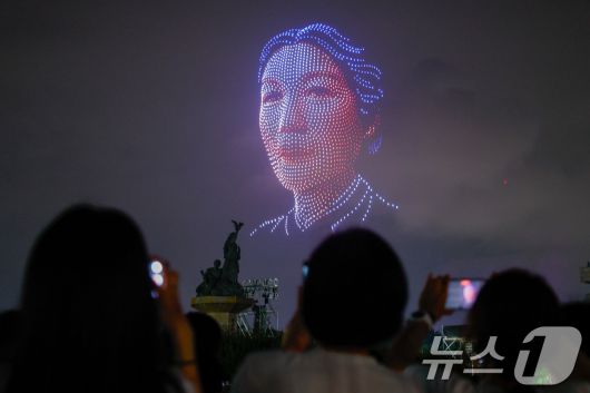 (서울=뉴스1) 안은나 기자 = 광복 80주년을 맞아 14일 오후 서울 여의도 국회 잔디광장에서 열린 국회·국가보훈부·광복회 공동 주최 광복 80년 전야제 ‘대한이 살았다!’에서 남자현 열사 얼굴의 드론쇼가 펼쳐지고 있다. 2025.8.14/뉴스1coinlocker@news1.krCopyright ⓒ 뉴스1. All rights reserved. 무단 전재 및 재배포, AI학습 이용 금지.