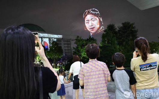 [서울=뉴스핌] 윤창빈 기자 = 제80주년 광복절을 하루 앞둔 14일 오후 서울 여의도 국회의사당 잔디마당에서 열린 광복 80년 전야제 ‘대한이 살았다!’에서 드론쇼가 펼쳐지고 있다. 2025.08.14 pangbin@newspim.com