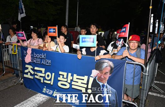 [더팩트ㅣ이새롬 기자] 조국 전 조국혁신당 대표가 광복절 특별 사면으로 출소를 앞둔 가운데, 14일 밤 서울 구로구 서울남부교도소 앞에 조 전 대표를 기다리는 지지자들이 모여있다.