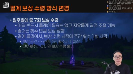 라이브 방송 마지막엔 질의응답이 진행됐다. 이 디렉터가 채팅창에 올라온 질문을 선정해 답변했다. 질의응답을 통해 추가로 개선이 약속된 콘텐츠를 정리했다. 그는 이날 미처 다루지 못한 내용에 대해서도 꼼꼼히 확인하고 게임에 반영할 것을 약속했다.