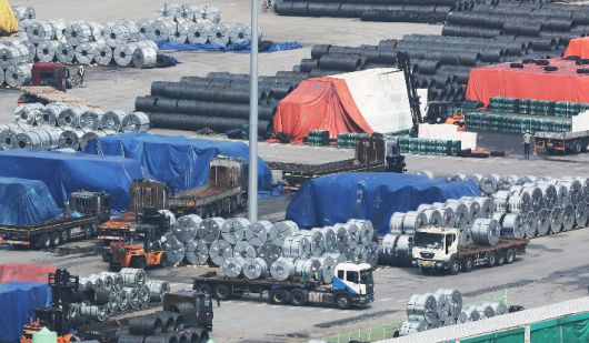 평택항에 쌓여 있는 철강 제품. 연합뉴스 |