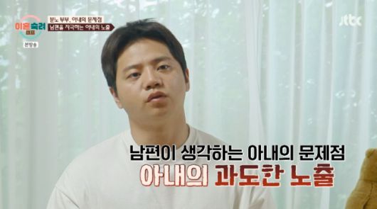 남편이 제보하는 아내 문제점 영상도 공개됐다. 남편은 아내의 노출을 언급하며 “아내랑 가장 많이 싸우게 된 건 아내의 과도한 노출이 심하다. 일단 그냥 평범한 옷이 없다. 가슴 쪽이 파여 있거나 옆에 가슴이 파여있다”라고 말했다.