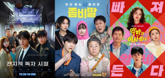 매년 여름 '빅4' '빅5' 같은 별칭으로 불리는 대작들이 개봉한 것과 달리 올해 개봉한 한국 영화 3편은 제작비부터 장르 등이 천차만별이다. 그 가운데 먼저 승기를 잡은 작품은 조정석이 주연한 영화 '좀비딸'이다. 지난달 30일 개봉한 '좀비딸'은 지난 13일까지 15일간 1위를 지켰으며 누적 364만 7144명을 동원, 손익분기점 220만을 넘기며 순항 중이다.