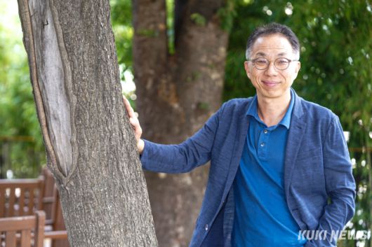 김종석 KBS PD가 5일 서울 여의도동 KBS 신관 앞 공원에서 포즈를 취하고 있다. 유희태 기자 |