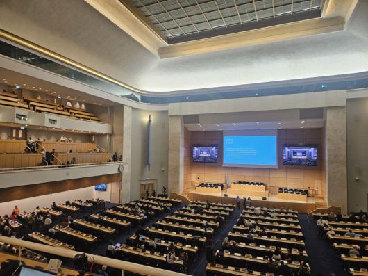 15일 ‘국제 플라스틱 협약 제5차 정부간 협상 속개 회의(INC-5.2)’ 본회의 직전 회의장 전경. 사진=박지영 기자 |