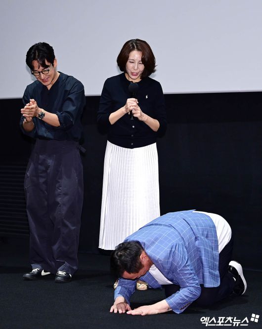 그러면서 박상면은 자리를 채운 취재진과 첫 관객들을 향해 큰절을 올려 환호와 박수를 받았다.