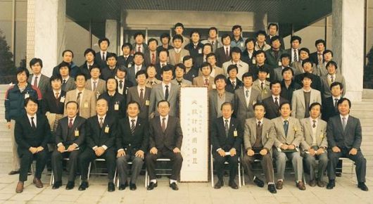 1986년 12월 14일 미국 컴버스천엔지니어링사로 출국을 앞둔 우리나라 원자력 연구팀이 기념 사진을 촬영하고 있다. 사진은 12월 12일 촬영한 기념 사진./사진=한국원자력연구원 제공