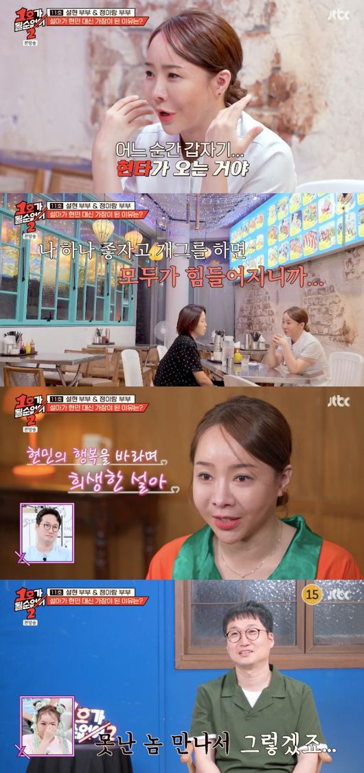 하지만 최설아 역시 일을 하면서 현타가 오긴 했다고. 그는 “처음에 아무렇지 않았다. 왜냐하면 내가 선택한 남자니까 내가 선택한 거에 후회하면 안된다. 내가 고른 이 사람한테 상처주면 안 된다. 어떻게든 먹여 살리고 이 오빠가 편안하게 개그하게 해줘야지 했었다”라고 이야기했다.