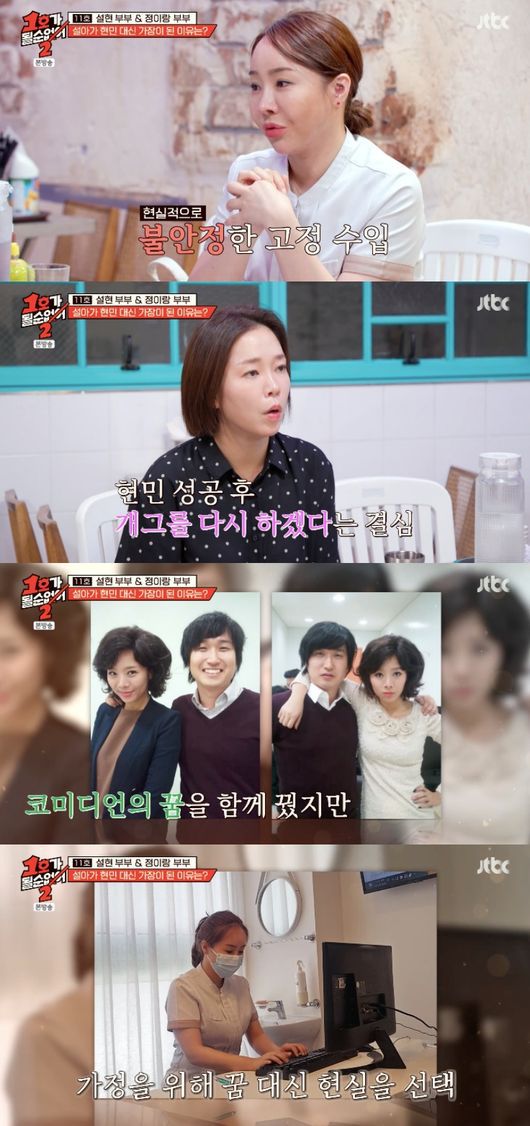 현실적인 문제에 부딪히지만 여전히 개그에 대한 욕심이 있다는 최설아는 “마음의 불을 껐는데 꺼져 있던 숯이 꺼지질 않더라. 개그는 내가 하고 싶은 거지. 할 수 있는 게 아니더라. 왜냐하면 아기도 있고, 엄마도 있고, 오빠도 있으니까. 나 하나 좋자고 하면 모두가 힘들어지니까 나 하나만 내려놓으면 된다고 생각했다”라고 전했다.