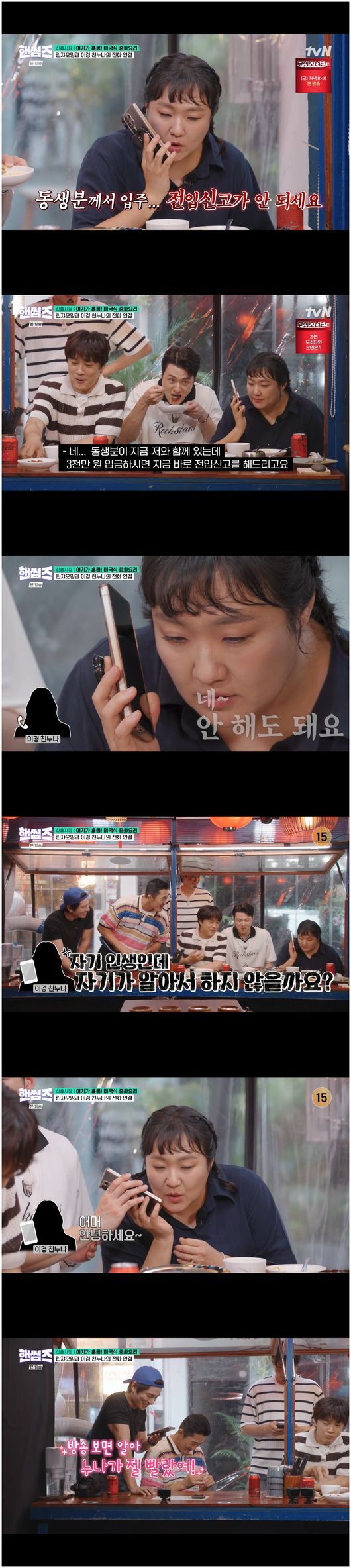 이수지는 이이경의 누나에게 보이스피싱 린쟈오밍 캐릭터로 속이려고 하기도 했다. 이수지는 “동생 분이 저랑 함께 있는데, 3천만 원 바로 입금하면 전입신고 가능한데 입금 바로 안 하시면 전입신고 안 돼요”라고 말해 모두를 놀라게 했으나, 이이경의 누나는 “안 해도 돼요. 자기 인생인데 자기가 알아서 하지 않을까요?”라며 싸늘하게 대꾸했다. 이수지는 사과했고, 이이경의 누나는 받아들였다.
