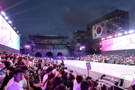 14일 오후 경복궁 흥례문광장에서 열린 광복 80년 전야제 '우리는 빛이다' 행사에서 오프닝 퍼포먼스가 진행되고 있다. 이번 전야제의 주제인 '우리는 빛이다'에는 지난 80년 대한민국을 만들어 온 국민 모두가 그 자체로 '빛'이었으며, 앞으로의 80년 또한 함께 밝혀가자는 뜻을 담았다. 2025.8.14/뉴스1 ⓒ News1 박지혜 기자 |