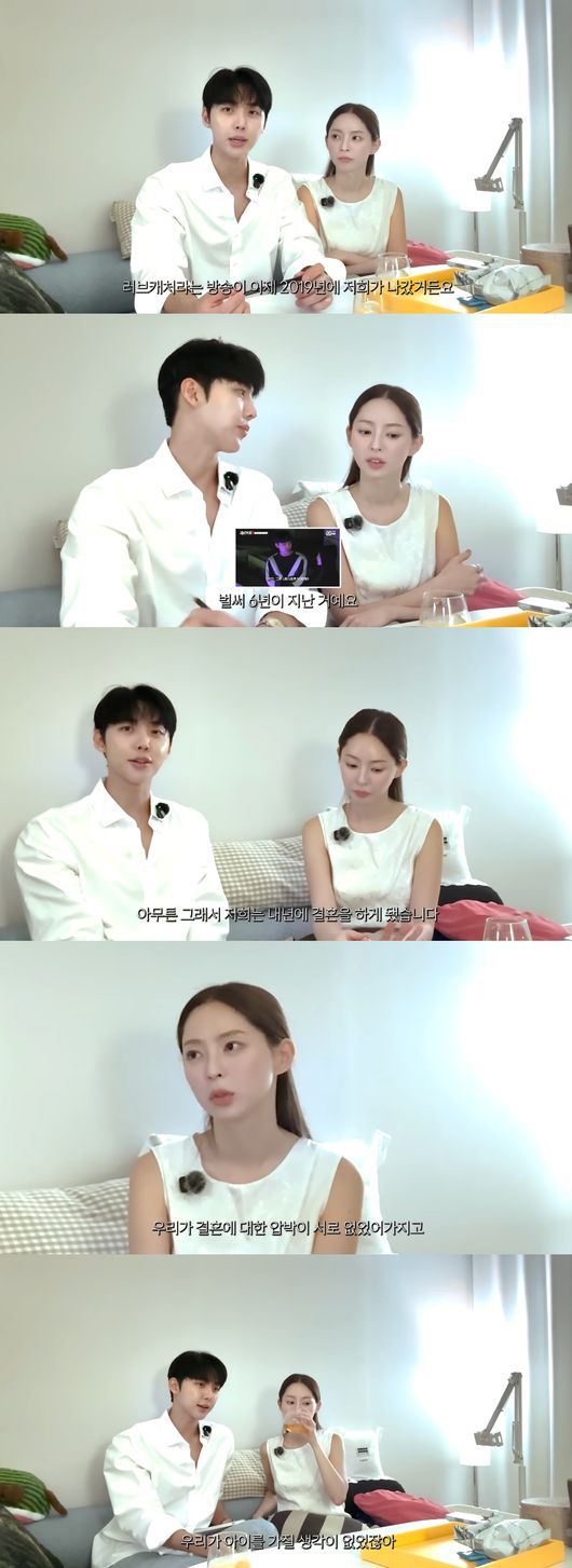 박정진은 "그것도 그렇고 제일 큰건 우리가 아이를 가질 생각이 없었다. 지금도 확실하게 정한 건 아니지만 지금보다 훨씬 더 아기는 생각없다 이러니까. 어쨌든 저희는 내년에 결혼하게 됐다"고 전했다.