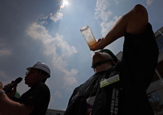 ▲29일 서울 종로구 국정기획위원회 앞에서 열린 민주노총 건설노조 폭염 실태 기자회견에서 참가자가 물을 마시고 있다. ⓒ연합뉴스 |