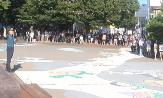 2025년 8월15일 아침 7시48분, 세 사람의 기적 같은 만남이 이루어질지 지켜보기 위해 많은 시민이 이곳에 모여 있었다. 하지만 폭발물 협박 소동으로 촬영은 중단됐다.