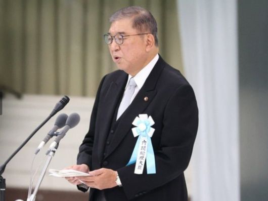 이시바 총리는 15일 일본 도쿄 일본무도관에서 열린 ‘전국 전몰자 추도식’에서 “히로시마, 나가사키 원폭 투하, 각 도시에 공습 및 함포 사격, 오키나와 지상전 등에서 희생된 분들을 위해 기도한다”며 “오늘날 일본의 평화와 번영은 전몰자의 생명과 고난의 역사 위에 세워진 것임을 잊지 않는다”고 말했다.