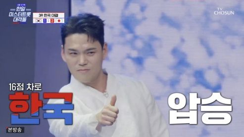 광복절을 하루 앞두고 거둔 이번 승리는 시청자들에게 더욱 뜻깊게 다가왔다. 스페셜 게스트로 출격한 '미스트롯2' 선(善) 홍지윤은 야시로 아키의 '비의 그리움(雨の幕情)'으로 '미스터트롯' 한일전 하프타임쇼를 장식하며 대결의 열기를 이어갔다. 또한 승부를 넘어 서로의 문화와 음악을 존중하며 만들어낸 무대는 국경을 뛰어넘는 감동을 전했다.
